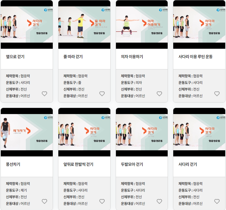 비대면으로 집에서 따라 할 수 있는 동영상 프로그램들도 준비되어 있습니다.