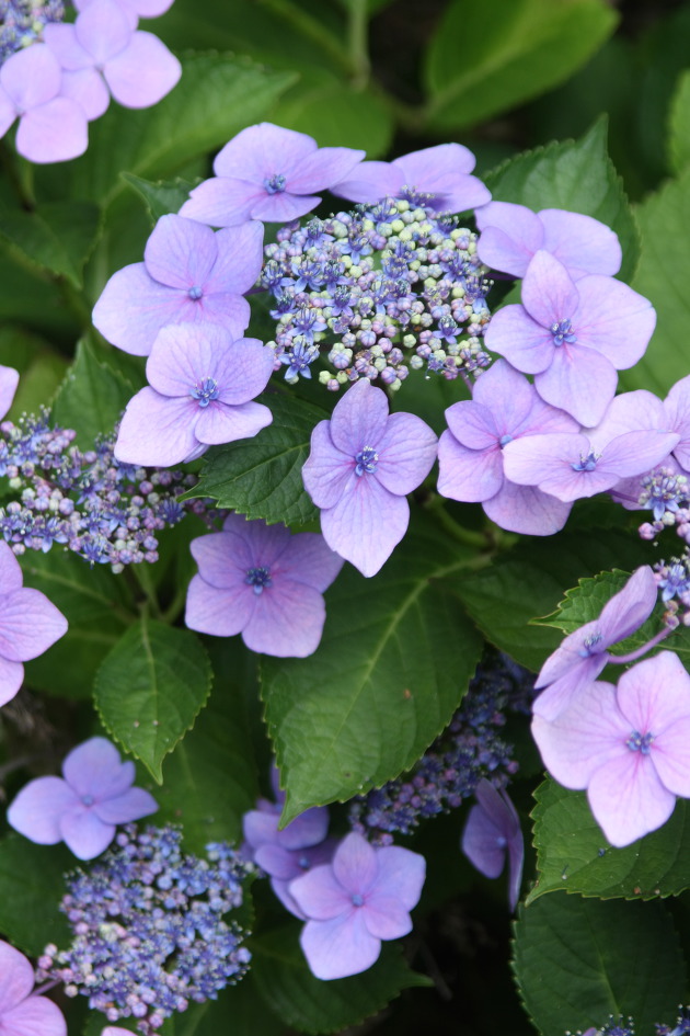 가장 흔히 볼 수 있는 수국입니다. 큰 잎과 화려한 꽃송이를 가지고 있으며, 파랑, 분홍, 보라 등 다양한 꽃의 색상을 나타냅니다. 특히 이 품종은 토양의 pH에 따라 꽃의 색상이 변한다는 특징이 있습니다.