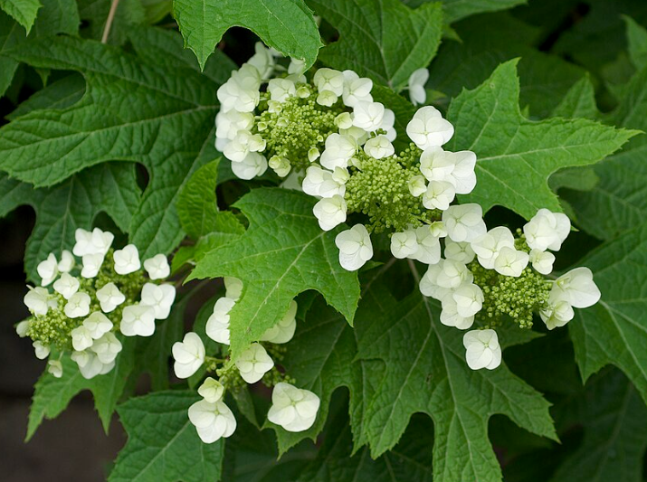 북미 원산의 수국으로, 오크나무 잎과 비슷한 모양입니다. 여름에는 흰 꽃을 피우고, 가을에는 잎이 붉게 변하는 것이 특징입니다.