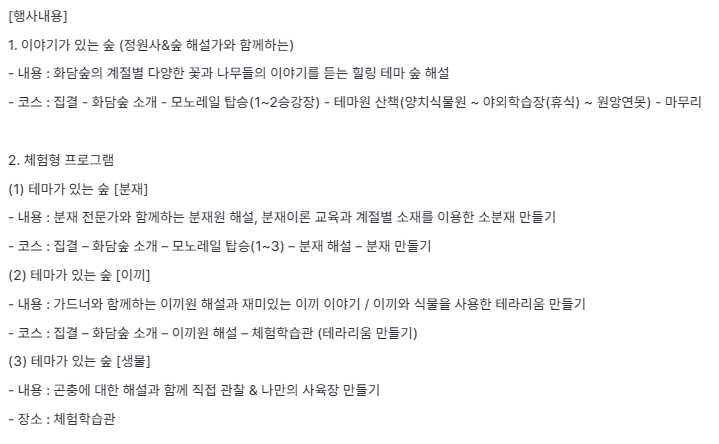 - 문화 공연, 서커스, 수국 컬러링 엽서 만들기 등 다양한 프로그램이 마련되어 있습니다.