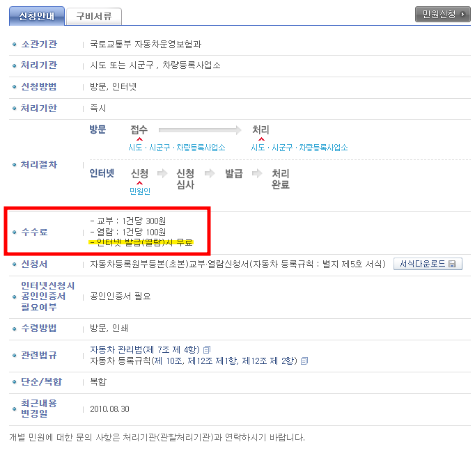 방문하면 발급 (300원) 및 열람 (100원)의 수수료가 발생합니다. 하지만 인터넷으로 발급 및 열람을 신청하시면 무료입니다. 시간도 절약되고, 비용도 절약되는 인터넷 조회 및 발급 방법에 대해 알려드릴게요!