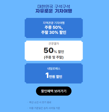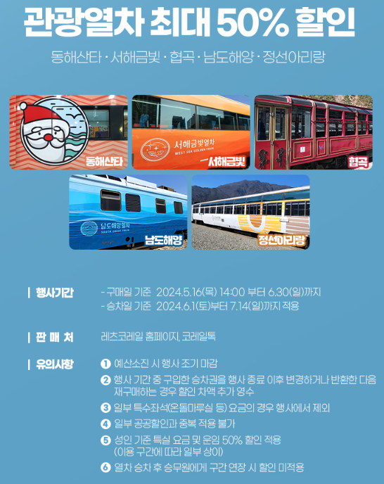 ■ 혜택 2 : 관광열차 5개 노선 탑승 시 최대 50% 할인