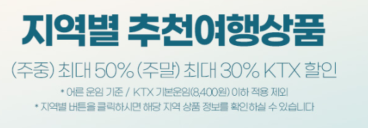 ■ 혜택 1 : KTX를 타고 지역관광 결합 상품을 구입하면 주중 최대 50%, 주말 및 공휴일 최대 30% 할인