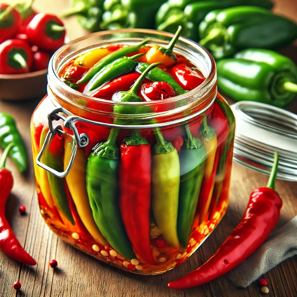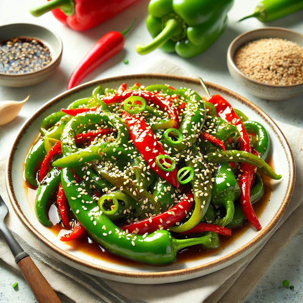 고추를 깨끗이 씻어 소금에 절인 후 물에 씻어냅니다. 간장, 식초, 설탕, 물을 끓여서 식힌 후 고추를 넣고 하루 정도 재웁니다.