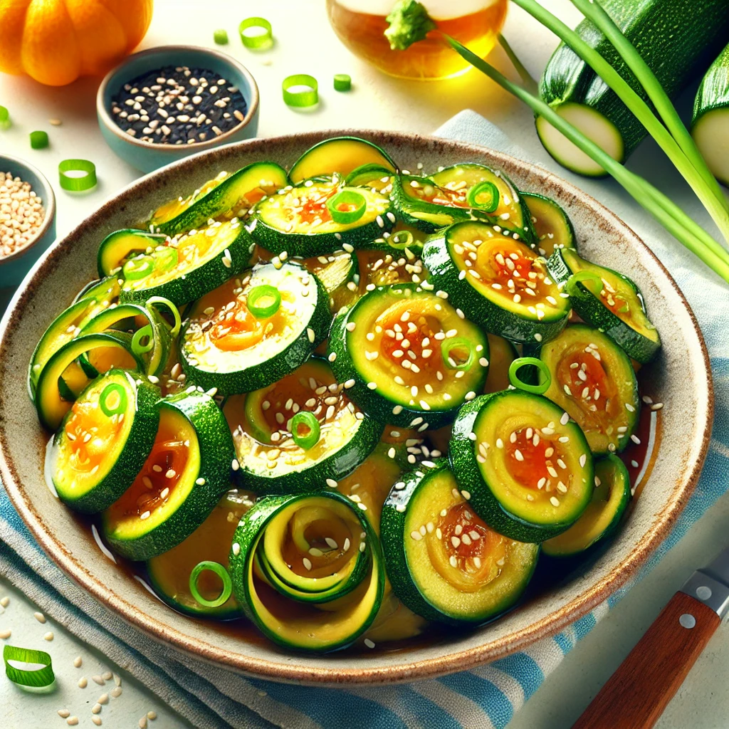 애호박을 얇게 썰어 팬에 다진 마늘을 볶다가 애호박을 넣고 간장으로 간을 맞춰줍니다. 마지막에 참기름과 깨를 뿌려 완성합니다.